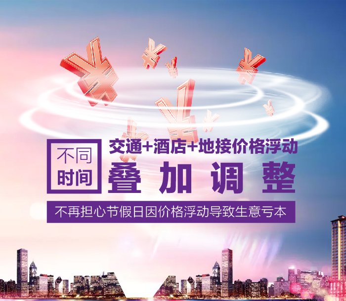 價(jià)格更新軟件再添雙翼,浮動(dòng)價(jià)格多個(gè)時(shí)間段可以疊加調(diào)整,滿(mǎn)足不同時(shí)間段,交通,酒店,地接價(jià)格的不同浮動(dòng)需求,不再擔(dān)心節(jié)假日因價(jià)格浮動(dòng)導(dǎo)致生意虧本了,特別的功能給特別的您!。